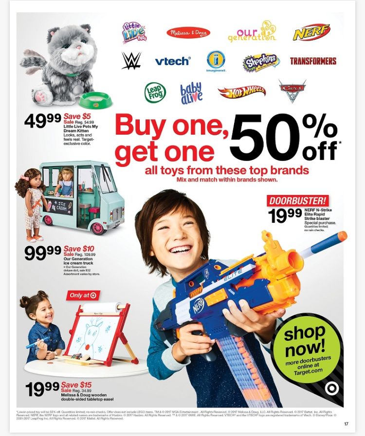 琳瑯滿目各式各樣適合各種歲數男孩女孩的玩具基本上都會打折,爸媽事前的功課要做足,等到黑五當天才手忙腳亂亂槍打鳥的話,受歡迎的玩具可能很快就被搶光囉!玩具原則上折扣在5到6折之間,有些是第二件5折