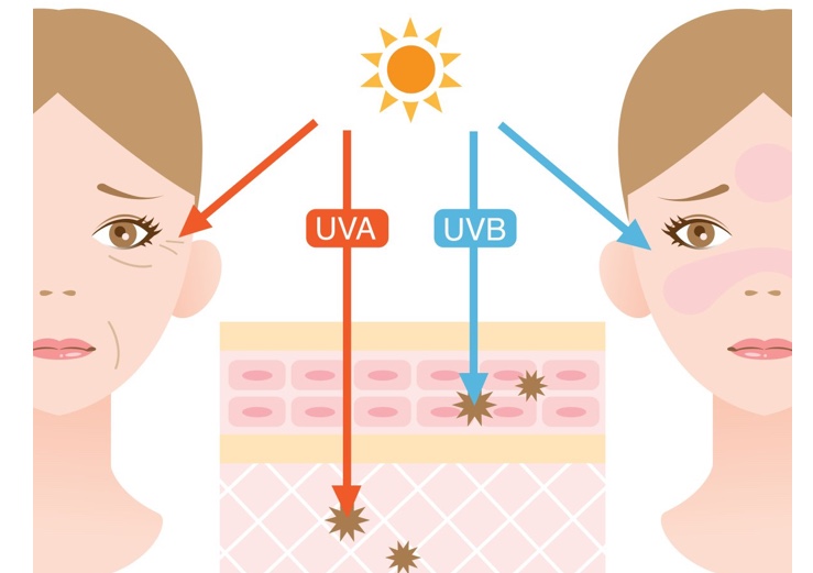 1)UVB-短波紫外線:照射在皮膚角質層,會使皮膚在短時間內(一般20-30分鐘左右)曬傷,曬紅等。