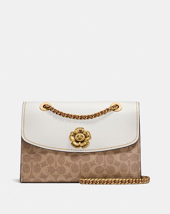 給大家看一下官網上的正面近照,孫芸芸背的這款是Parker In Signature Canvas,有焦糖色跟白色兩款,英國官網售價350英磅,美國官網(點這裡)便宜一點350美金,Parker系列的包款推薦大家在Coach官網上購買價錢最便宜,款式也最齊全,這個包包不算小,寬度26cm,可以放下長夾、iphone plus、眼鏡沒有問題,焦糖色的皮革在燈光下有漸層的感覺,可能有人會覺得老氣,但是人妻我卻覺得很復古,也很好搭配衣服;白色的款式也很好看,很適合夏天,你說是不是很難選?