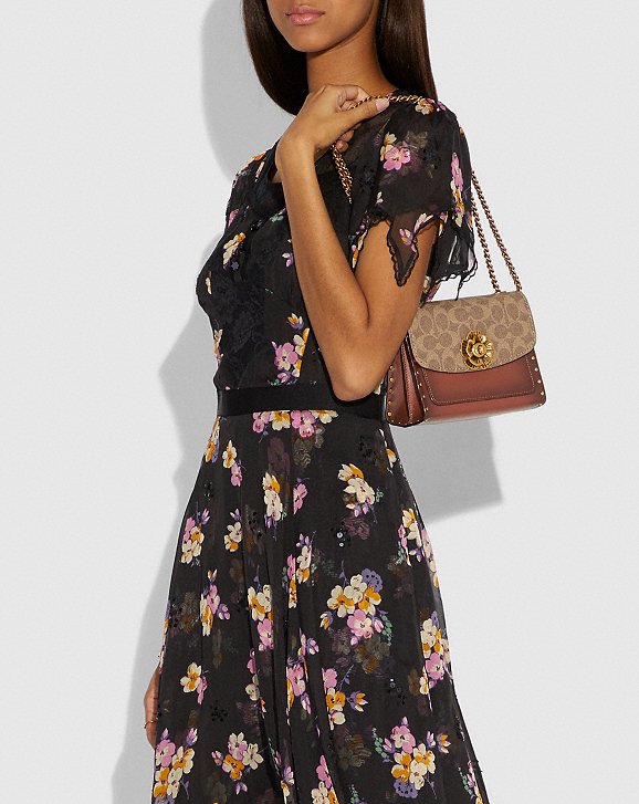 人妻就是被這兩款包給燒到,是不是有點Chanel+Gucci+LV的綜合體? 之前我一直很抗拒的coach圈圈logo竟然在漸變的焦糖色皮革與仿舊的山茶花五金襯托之下,也有些微的時尚感了。再看一下台灣第一時尚名媛孫芸芸背起來的樣子,不同於Selena搭配的溫柔刺繡洋裝,孫芸芸一身龐克搖滾短靴,雖然色系不同,但是讓這個包包顯得更為搶眼。