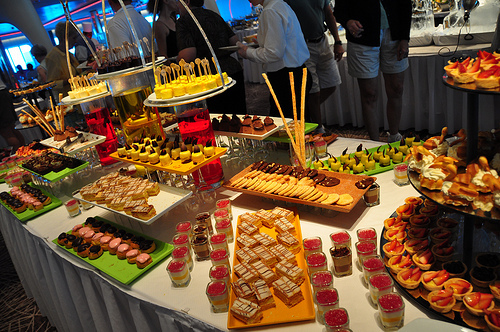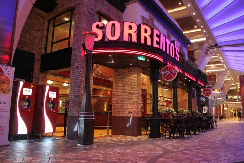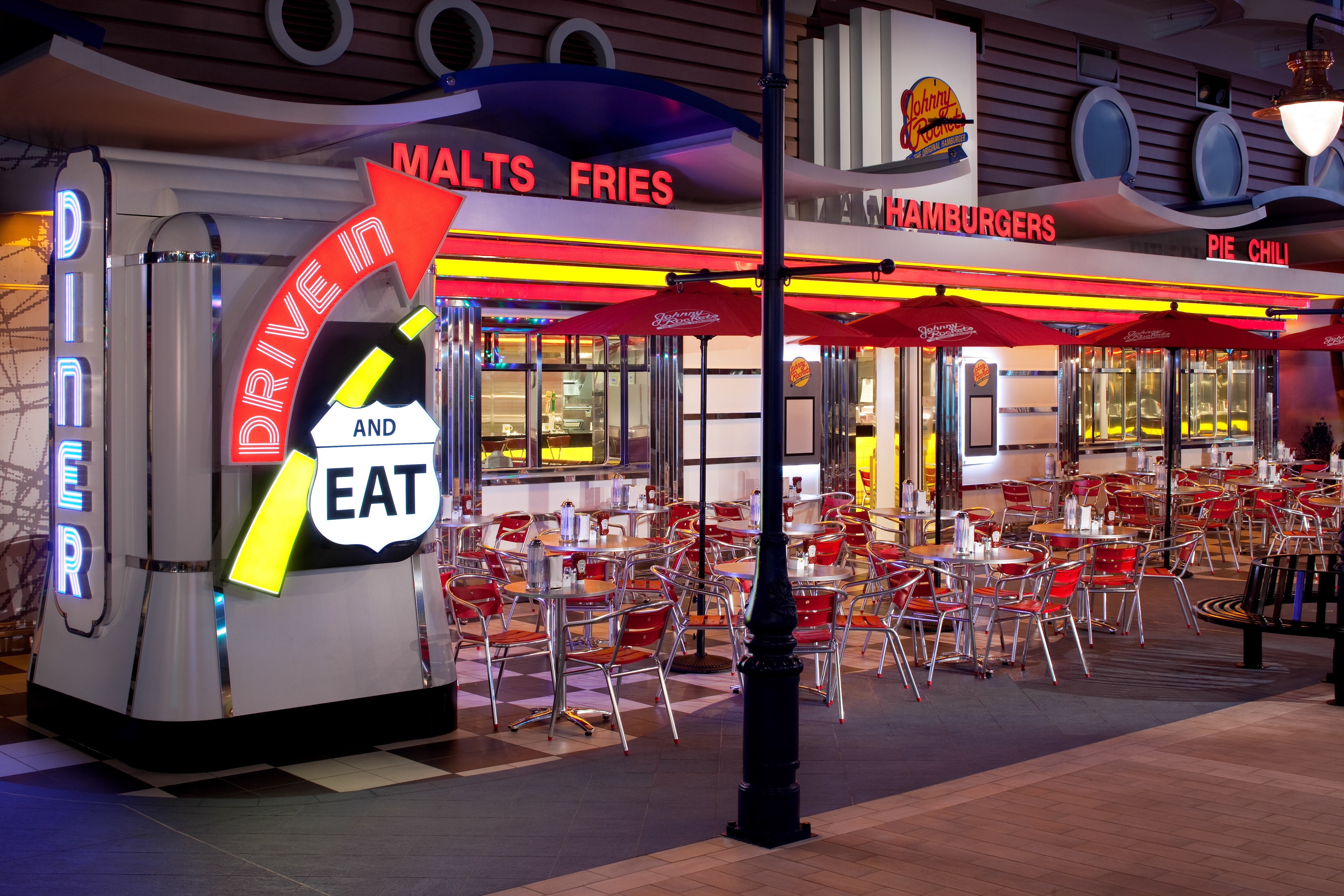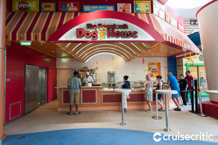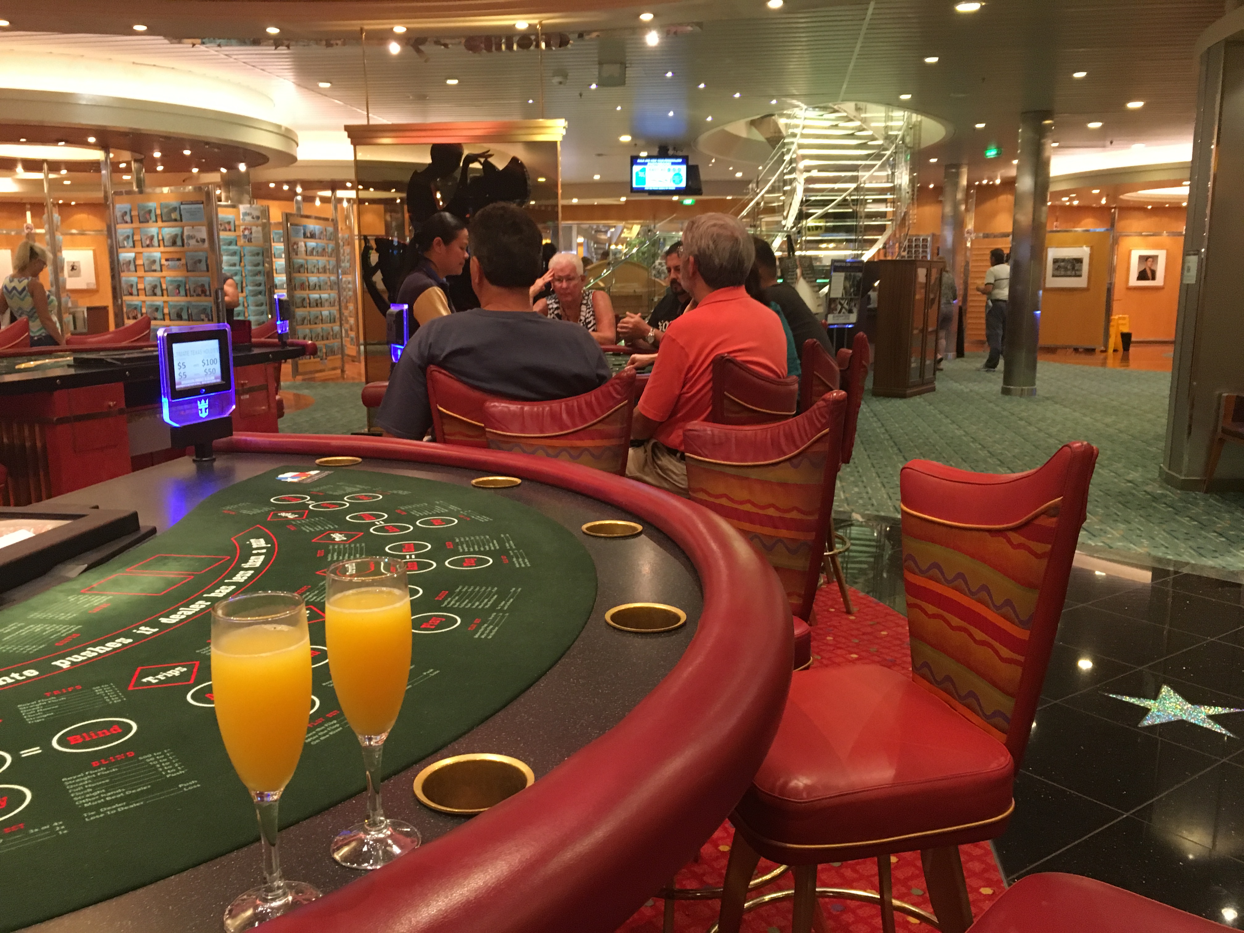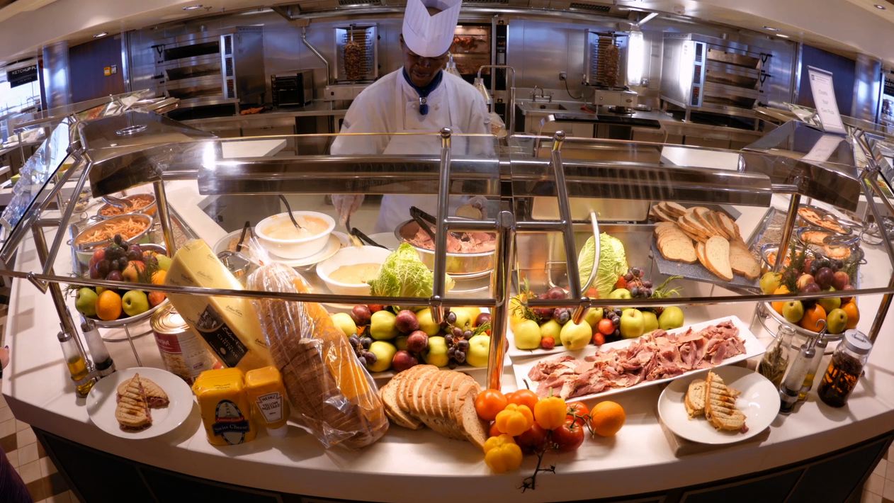 說說吃的: 船上的基本都是任吃任喝, 酒水飲料需要額外付, 喝得多的建議買個package, soda要額外付錢, 但是冰水熱水,熱巧克力, 熱茶, ice tea, 檸檬茶那些都是免費的. 早餐和中餐都是去buffet或是其他cafe吃的, 當然晚餐也有buffet, 但是我會建議去main dinning room吃, 服務很好, 而且菜式也相對精緻些 (我覺得跟飛機上商務艙的餐點差不多) 雖然比不上價格比較高的餐廳, 但是在船上那麼多天大廚每天要餵飽幾千人的肚子,能體驗不同的菜式已經挺滿足的了. 而且還有3個course前菜, 主菜,甜點, 有兩天會是formal night需要穿正裝, 有一天是lobster night有龍蝦, 需要特別說明一下, dinning room也是buffet形式的, 所以你可以點好多份前菜和主菜和甜品的, 只要你吃的完. 我們每天都點滿多,主要是因為玩了一天會超餓的. 船上的食物ㄧ定都是冷凍的, 不會很新鮮, 不太吹毛求疵的話, 賣相還是不錯挺精緻的. 牛排啊, 各種魚啊, 蝦啊, 干貝啊, 羊排羊腿, 鴨胸鴨腿, 雞胸, 之類的菜單都會有,而且船上的服務員的服務都超級好, 要是平時去的餐館都有這種服務水準就好了! buffet可以隨便坐, 我喜歡坐靠海的或戶外的位置, 在汪洋大海中閃耀的陽光下吃東西也太浪漫了! 晚餐的話每天的餐桌是固定的, 服務生也是固定的, 我們的服務生好nice, 而且熟絡了他們會推薦什麼好吃, 我們點的菜也給我們加大分量。 想要有不同的選擇船上也有一些付費的餐廳像日本料理,牛排館,Johnny Rocket, Jamie Oliver等等或是免費的cafe, pizza點心店, hotdog stand可以解饞。