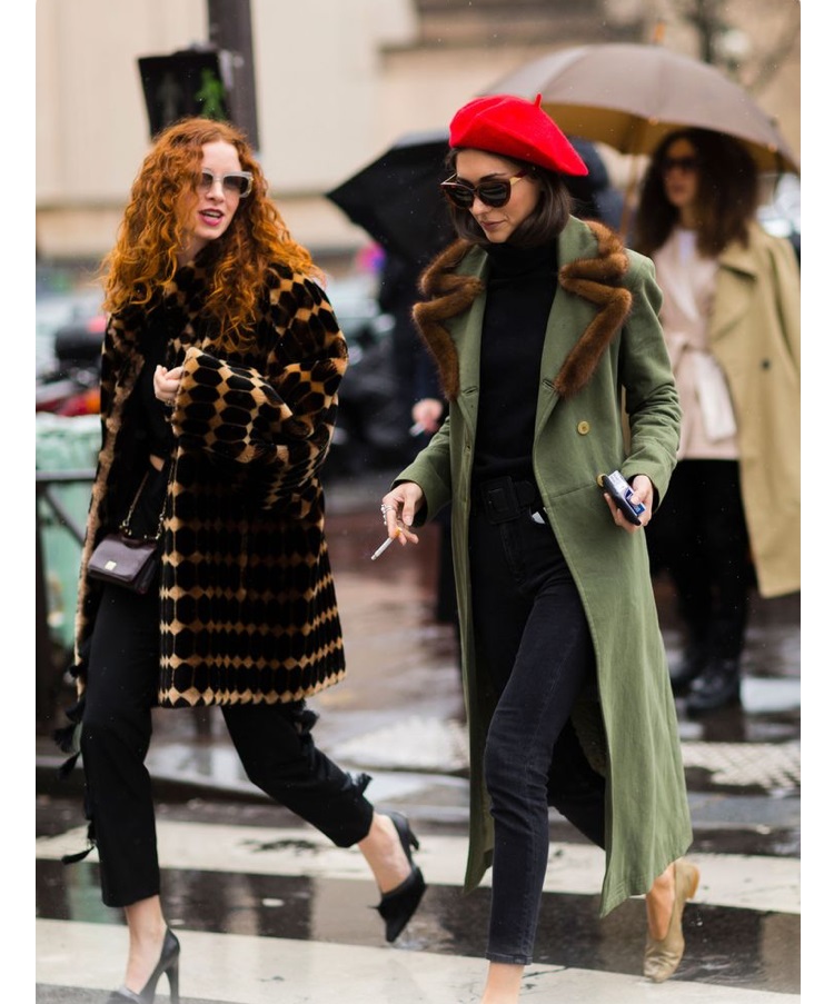 法式經典浪漫的代表,一頂黑色毛尼的貝雷帽可以很cool也可以很淑女,絕對為你冬日的造型加分。貝雷帽有一種天生的復古感,所以搭配較時尚現代感的衣服,會呈現更chic的感覺 (例如粗棒針織毛衣半塞進印花寬褲裡) 不過謹記在時尚的世界裡凡事點到就好,千萬不要過度渲染法式風情的刻板印象,所以法國長棍麵包快收起來,除非你想看起來像硬扮的假巴黎人